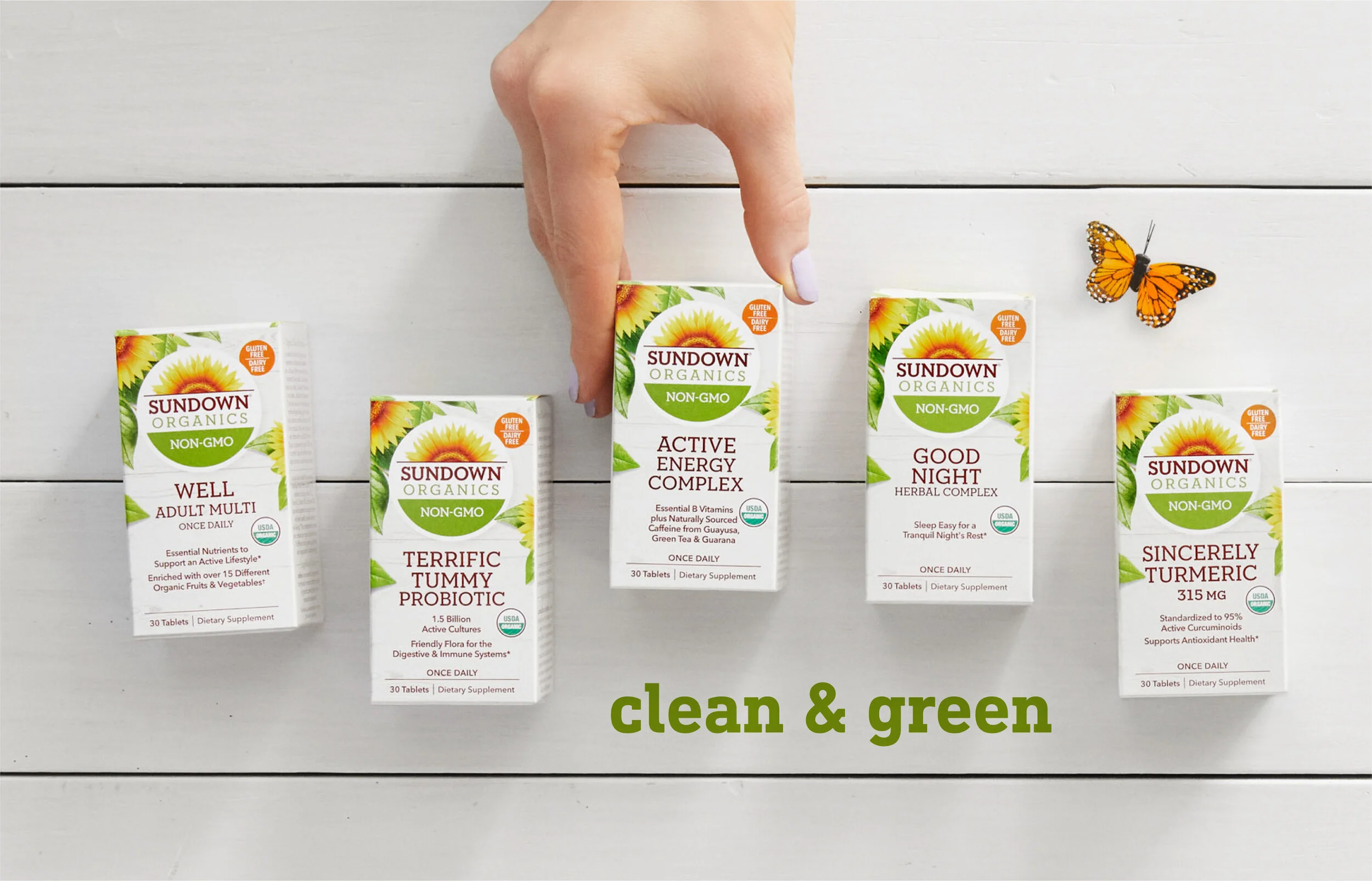 "What makes Sundown® Organics unique is that it addresses the desire for products with clean ingredients consumers will feel good about, and at an affordable price point.” Elliot Lasky, President, Naturals Product Group for The Nature's Bounty Co. “The line is available at drug and food retailers nationwide – allowing anyone to join the organic movement."